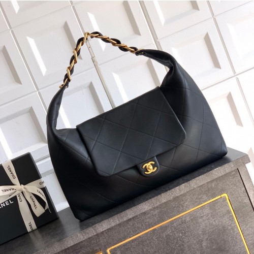 샤넬 맥시 호보 백 유광 카프스킨 블랙 AS5839