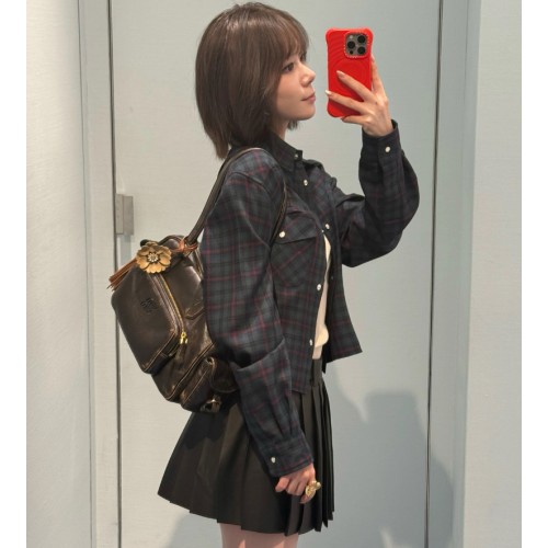 25 FW 미우미우 플레이드 프린트 스냅 버튼 셔츠 MK1970 Y