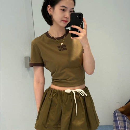 미우미우 반팔 티셔츠 밀리터리 카카오 MJNA15 D