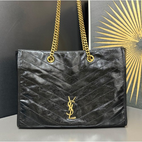 생로랑 니키 골드 로고 레더 숄더백 블랙 871151