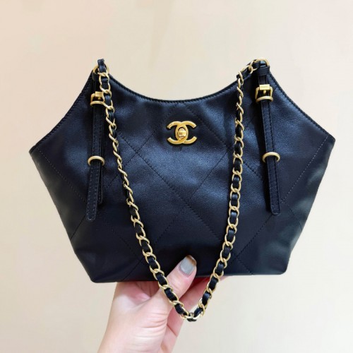 샤넬 쁘띠 체인 쇼핑백 카프스킨 블랙 AS6015