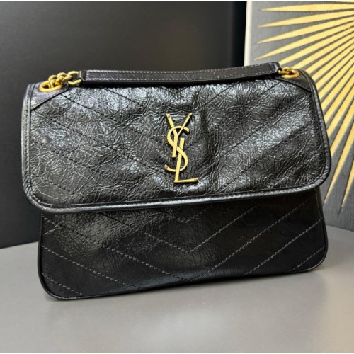 생로랑 26SS Niki M 미디엄 니티 크링클 레더 퀼트 숄더백 블랙 6331840EN071000